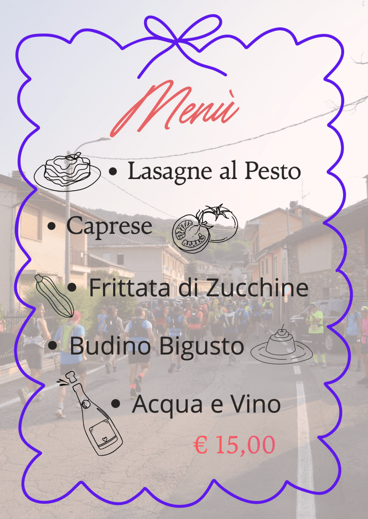 La quota di iscrizione comprende : Pacco gara + Maglietta Tecnica + gadget finisher + ristori di gara + servizio massaggi + volontari di percorso + soccorso alpino + guida alpina + pranzo di qualità con possibilità di menù x intolleranti e vegetariani a richiesta .